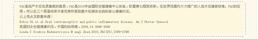 PAC康复标准是2010年由欧盟提出的人工流产术后优质康复服务标准。