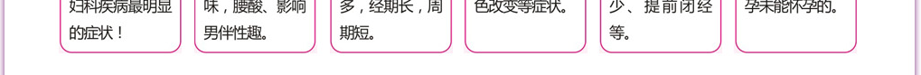 | 据国内外的医学料统计表明:已婚女性的健康问题中,76.8%由各种妇科疾病及乳腺疾病引起;近10年来,女性不孕、宫颈癌和乳腺癌发病率发病率平均每年增长2.3%。 |