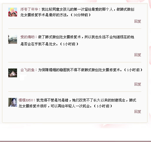 当他发现了床上的落红,他说会爱我一辈子。现在我们已经结婚三年了,并且有了一个可爱的女儿,一家三口很幸福。做了处女膜修复手术,我觉得值。